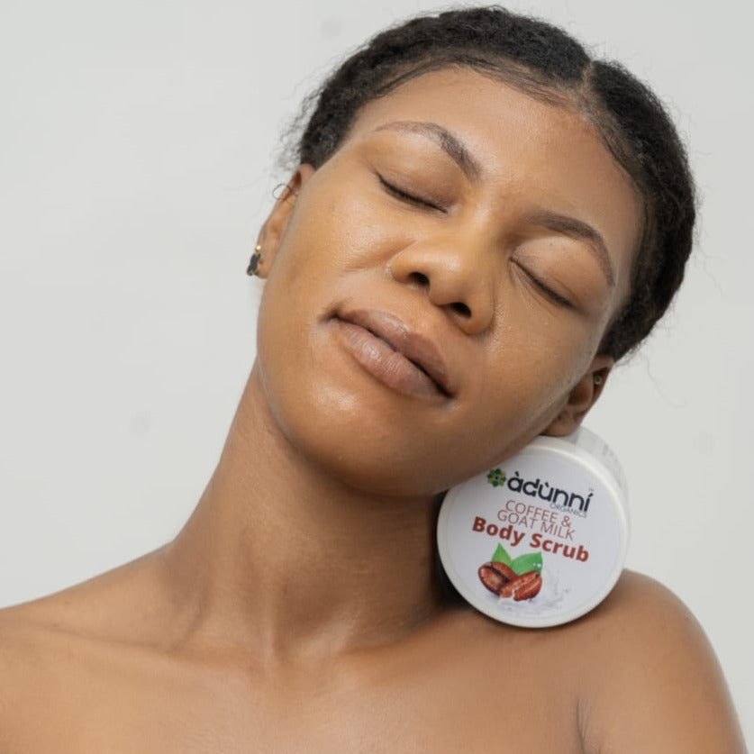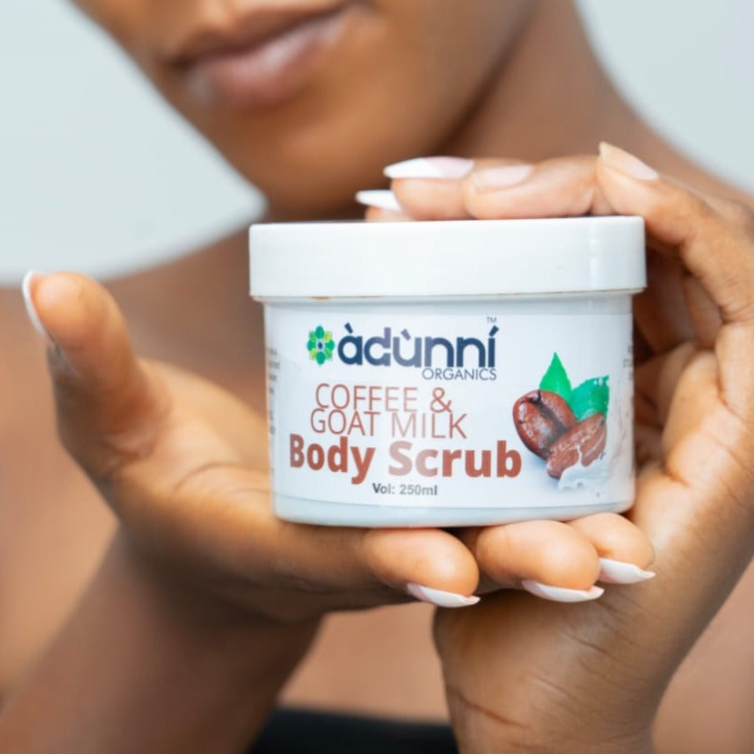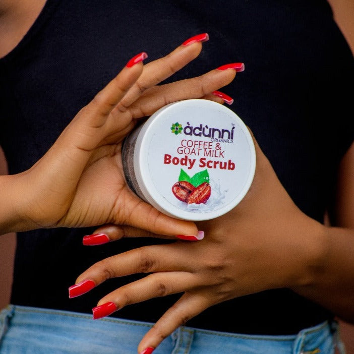 Coffee & Goat Milk Body Scrub is fabulous and detoxifying. Made with real Coffee Beans and enriched with Goat  Milk and Cocoa Powder for extra brightening nourishment. It is creamy and moisturizing and helps to stimulate blood circulation, and removes dead skin cells to reveal a smoother layer of skin.
