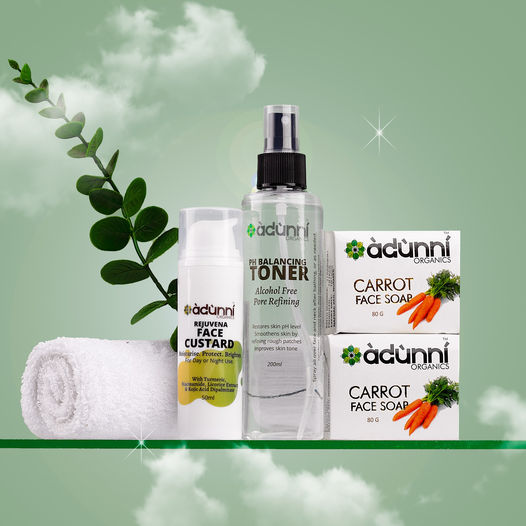 Consistent usage of the Adunni Organics Face Glow Kit brightens facial skin, clears blemishes, lightens uneven skin tone and makes facial skin glow up with visible results within 6 to 12 weeks of use.